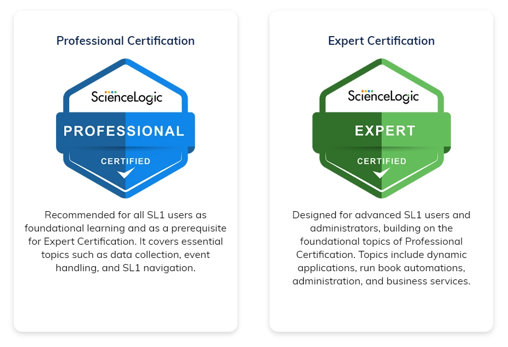 ScienceLogic offers training modules and certification programs in our learning portal. This training is a valuable way to learn more about our products and optimize your installation.