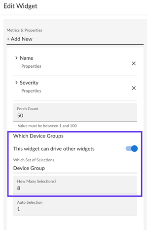 Device Group widget setting context: