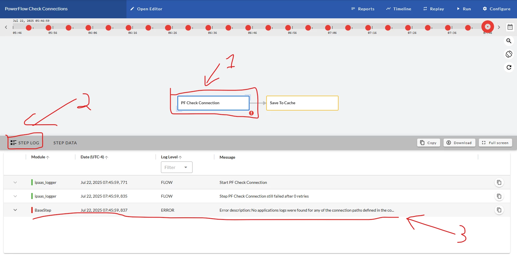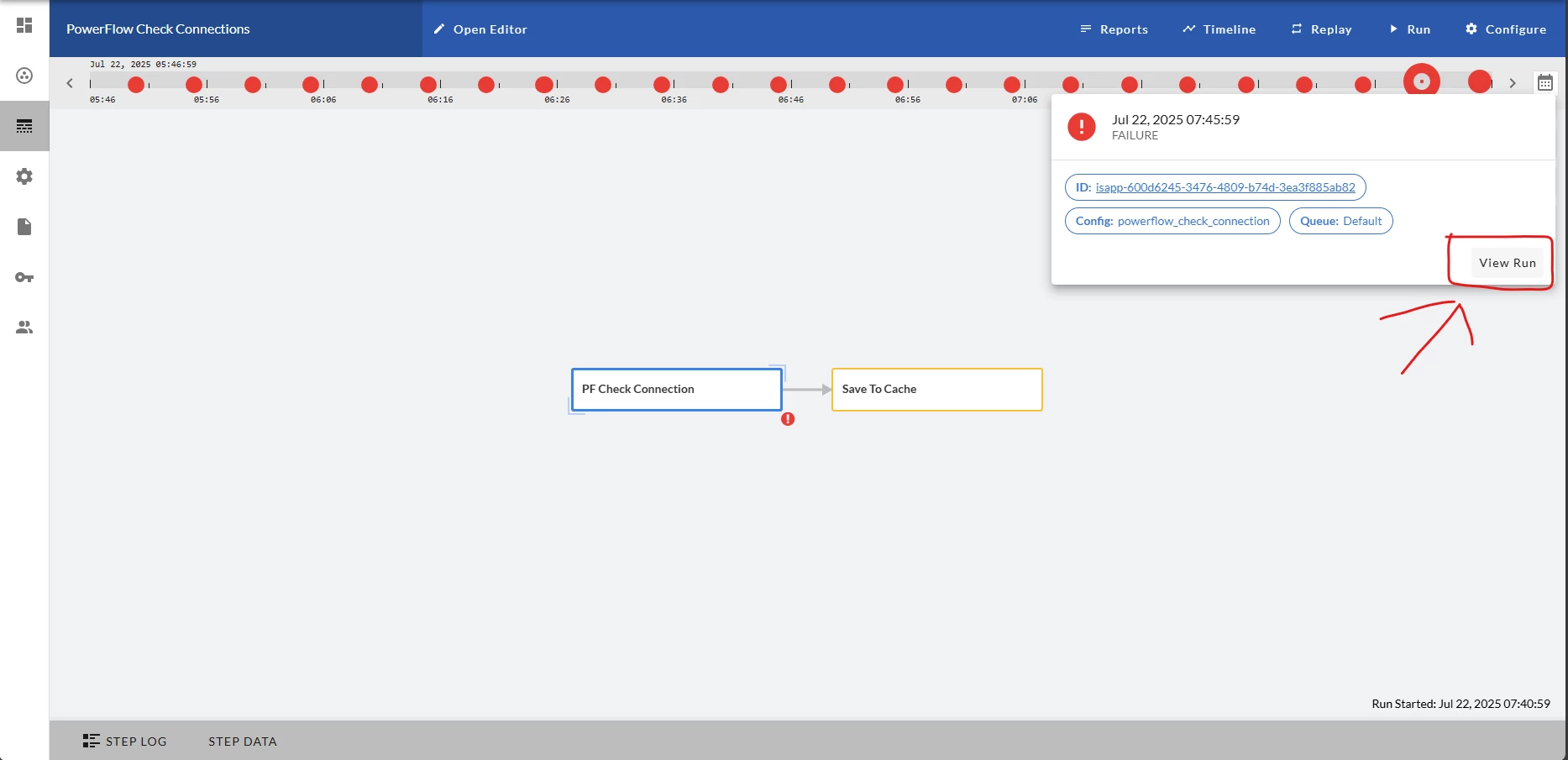 Finally, click on the step that failed, click on the Step Log button and you will be able to see the specific error in the drop down menu.